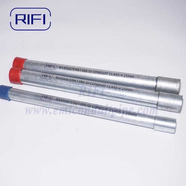 Technical Specifications Material: Galvanized Iron. Standard: BS4568. Class: 4 (heavy-duty galvanization). Coating: Hot-dip galvanized. Diameter Range: Various (commonly from 20mm to 50mm). Length: Typically 3-4 meters (custom lengths available). Color: Metallic silver. Length: 3.75 Meters. Trademark: RIFI. Connection Type: Threaded.